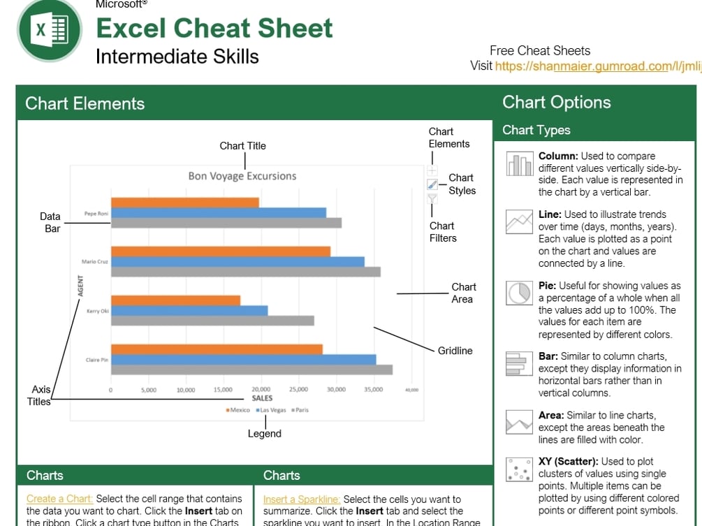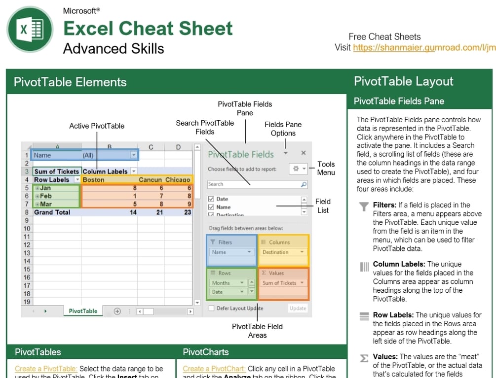 You'll get an ultimate printable PDF Cheat Sheet for excel.
